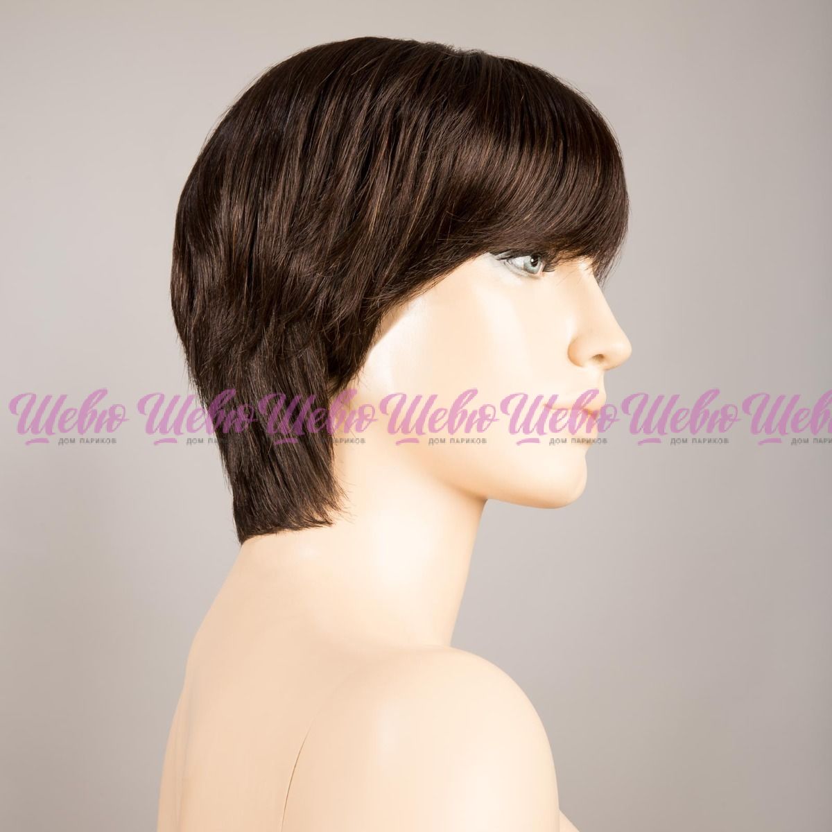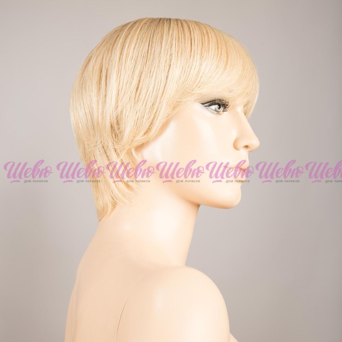 Парик изготовлен на 100% вручную. Верх парика выполнен на основе материала, имитирующего кожу головы (Monofilament). При изготовлении шапки, использованы полоски из полиуретана для лучшей фиксации парика. На лбу применяется сеточка для имитации роста волос.