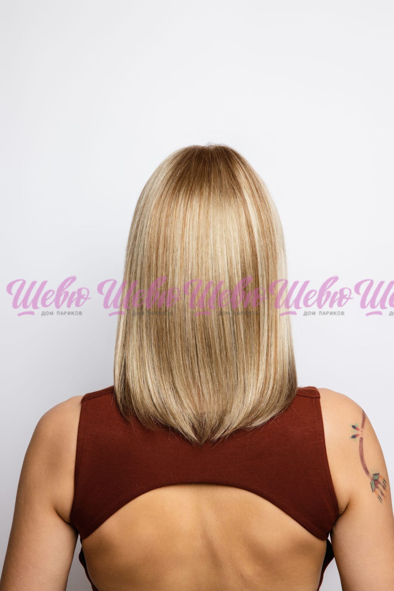Верх шапки парика выполнен из материала, имитирующего кожу головы (Monofilament), позволяющего укладывать волосы сверху в любом направлении. Тонкая фронтальная линия волос с ручным завершением придает парику максимально естественный вид. В определенных местах шапки парика добавлены полоски полиуретана, препятствующие его соскальзыванию и служащие местом надежной фиксации парика на двусторонний тейп (скотч).